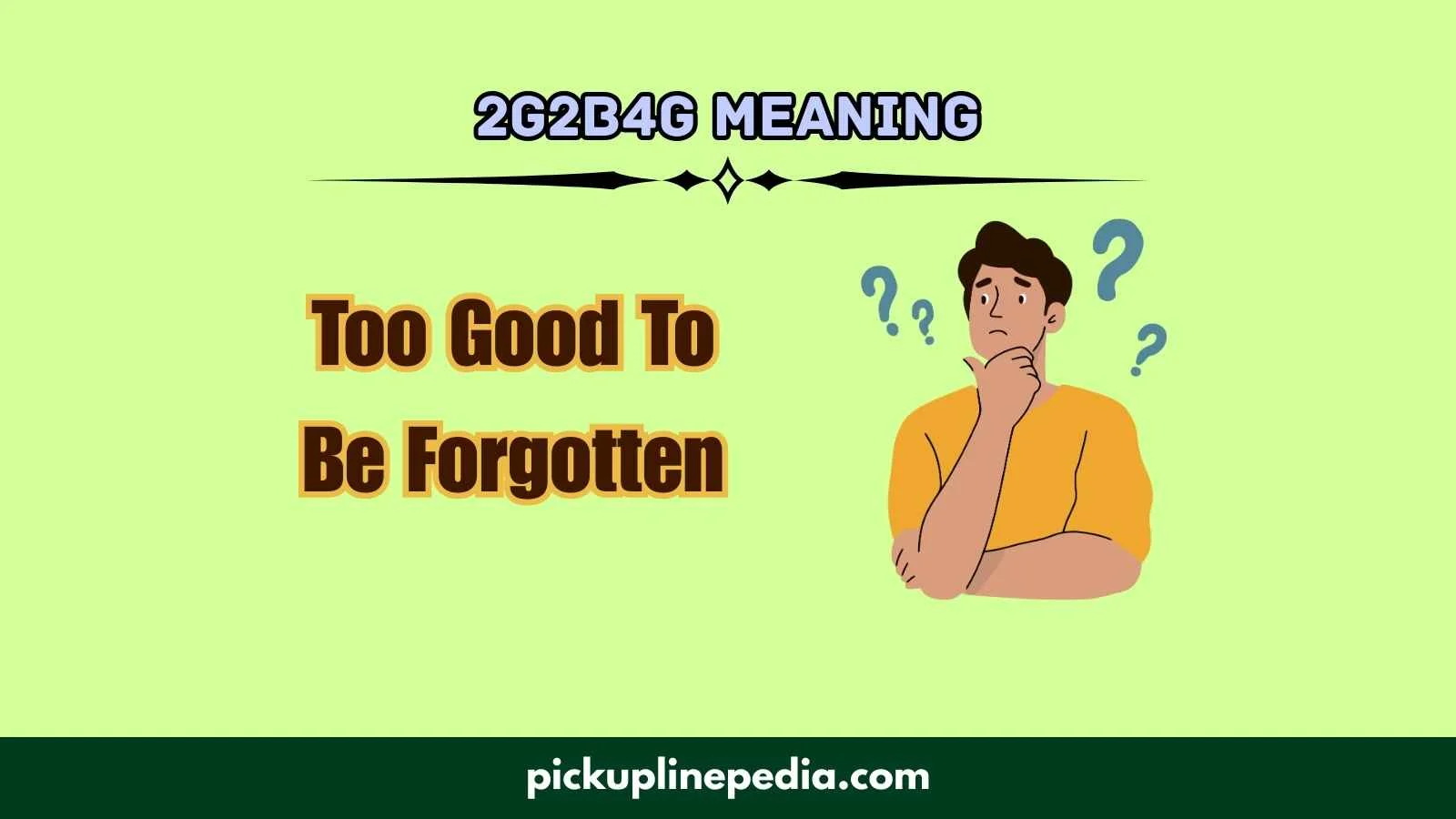 2G2B4G is an abbreviation of โ€œToo Good To Be Forgotten.โ€ It is typically used to describe something memorable, impressive, or remarkable. For example, a movie, song, message, or even a personโ€™s gesture can be labeled as 2G2B4G if it leaves a lasting impression. The phrase conveys admiration, nostalgia, or acknowledgment of exceptional quality. Unlike general compliments, this abbreviation emphasizes the idea that the moment, action, or item is not easily overlooked and deserves recognition.