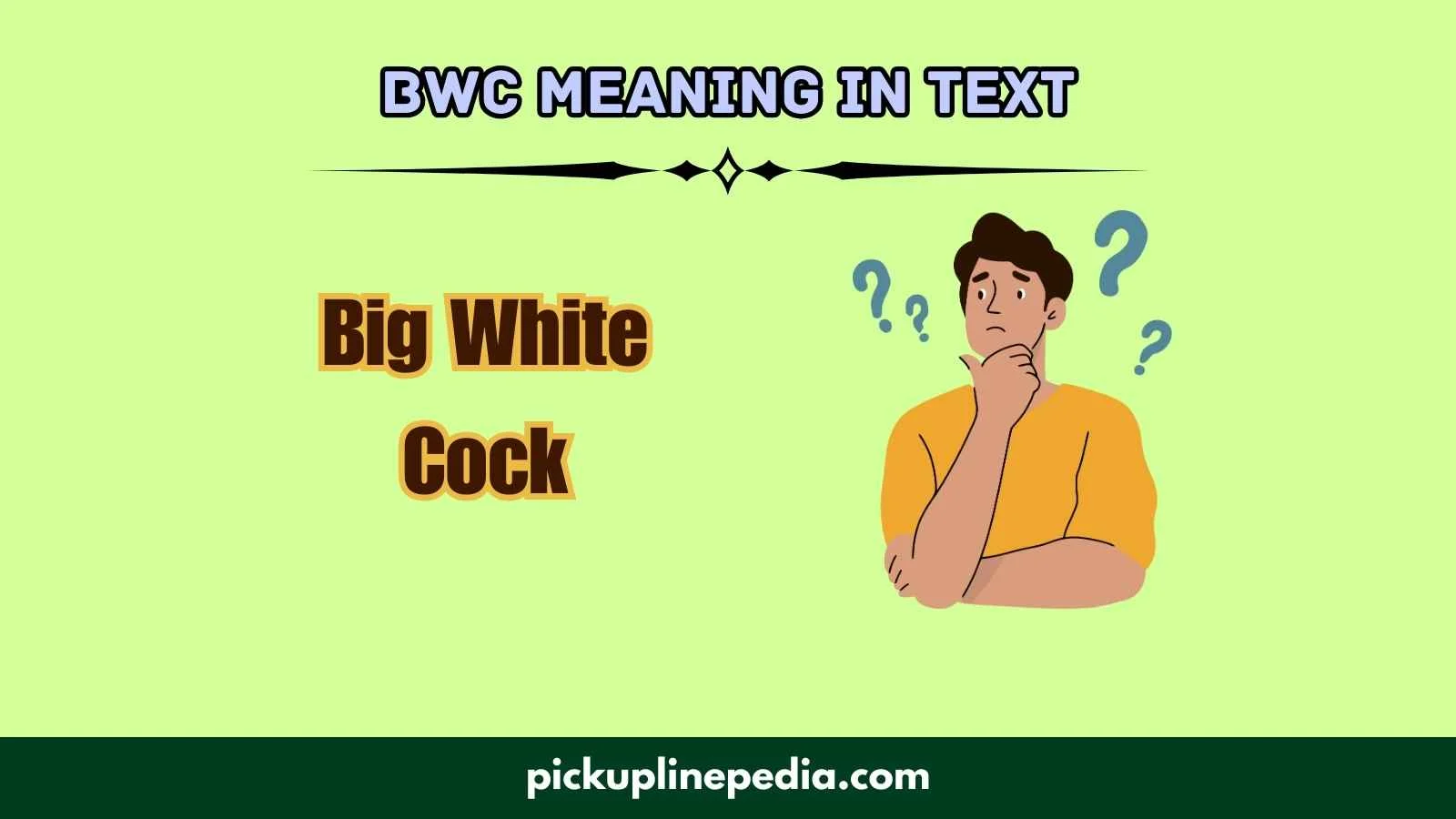 BWC is an internet slang abbreviation most commonly used in adult or explicit conversations. It typically stands for β€œBig White C*.”** The term is sexual in nature and refers to a physical description, usually within adult content, dating platforms, or explicit chats.