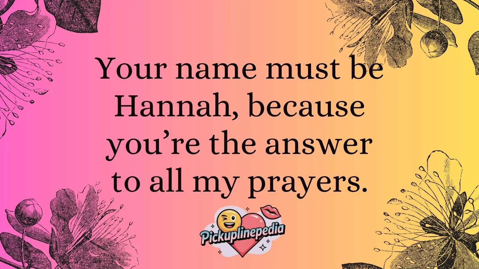 - Your name must be Hannah, because you’re the answer to all my prayers.