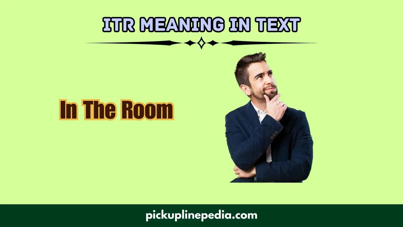 ITR meaning in text most commonly stands for “In The Room.” It is used to indicate that someone is physically present in a location but may not be actively participating in the conversation.