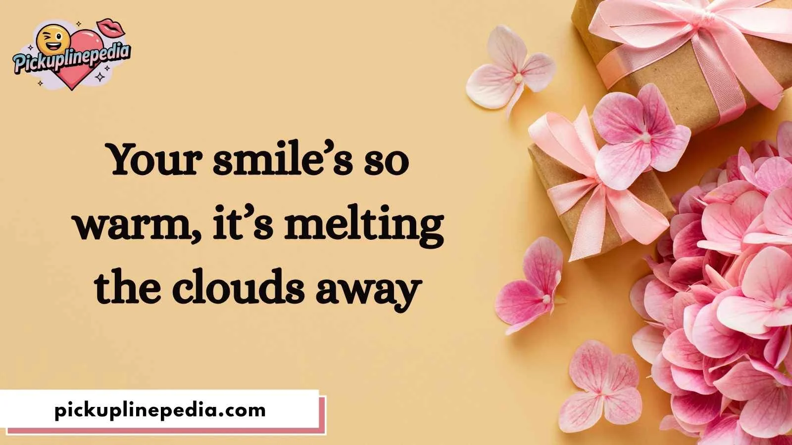 This list isn’t just a bunch of cheesy one-liners; it’s your ultimate toolkit for weather-themed charm. From stormy flirtations to sunny smiles, every line here is crafted to get a giggle, a blush, or even a number. Plus, they’re so easy to use, even a light drizzle won’t wash away your confidence.